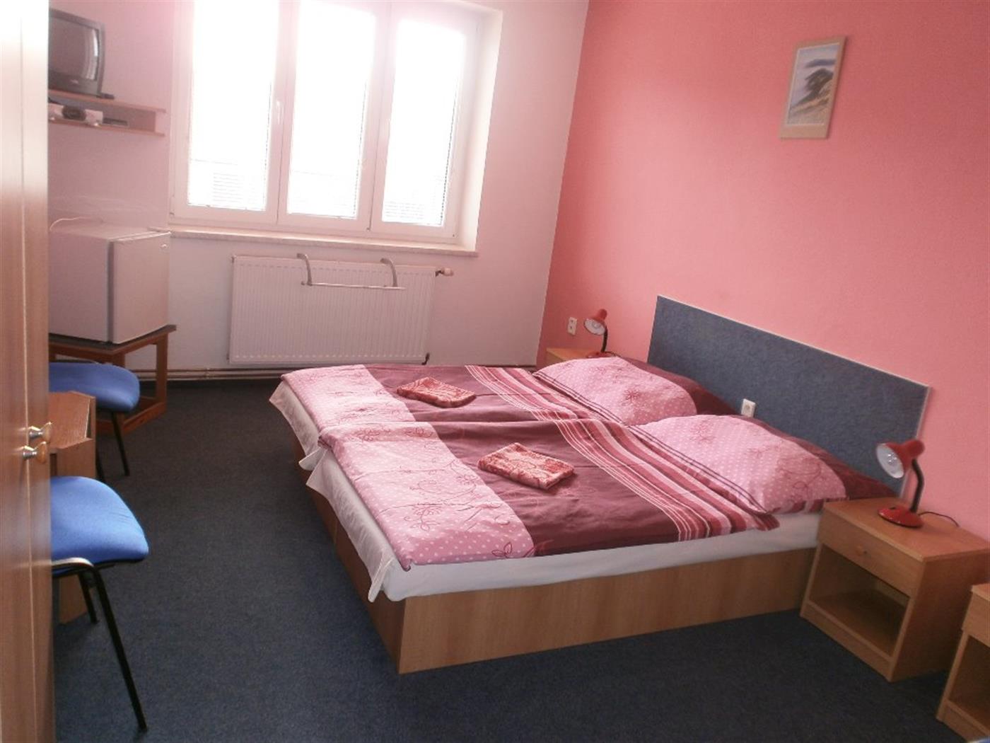 Zrekonstruovaný objekt s vyhlídkou na nedaleký vodní hrad a první kopce Pošumaví, stojí na malebném náměstí vedle novogotické radnice. V penzionu je možnost ubytování ve dvou, tří a čtyř lůžkových pokojích s televizí, wifi, vlastní koupelnou a WC. Rodiny uvítají rodinné apartmá s kuchyní a veškerým vybavením. Restaurace, salonek, 19 druhů italské pizzy, hotová jídla, moučníky a široký výběr nápojů, zahradní terasa, gril. Přátelská posezení, srazy, školení a slavnostní hostiny. Nedaleký vodní hrad a zdejší příroda nabízí kulturní a sportovní vyžití, ale i odpočinek a relaxaci. Ve volném čase možnost hraní stolního fotbalu, stolního tenisu, ruských kuželek nebo velkých keramických šachů. V objektu se nachází také sauna. V blízkosti penzionu je možné zapůjčení kol, nachází se zde dětské hřiště a hřiště na tenis.