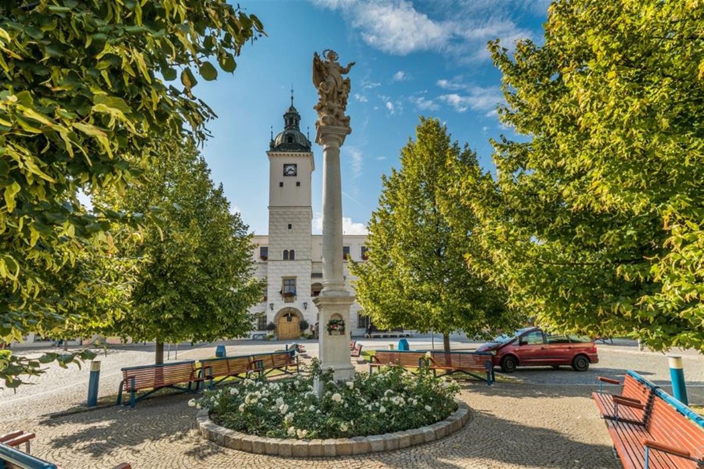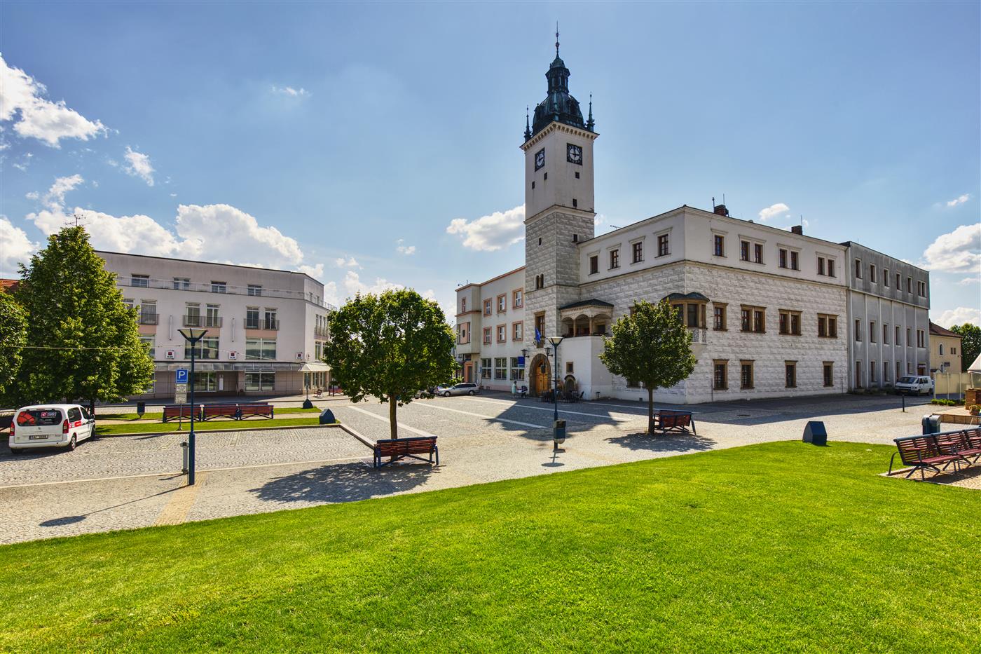 Byla postavena v letech 1561 - 1562 italskými staviteli. Věž dosahuje výšky 39 m. Radnice prošla mnoha úpravami jak exteriéru, tak interiéru, především opravou sgrafit. Dnes zde sídlí Městský úřad.
