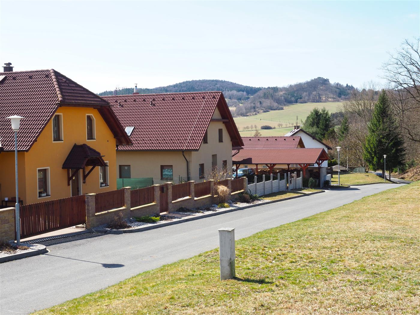Obec disponuje základní občanskou vybaveností, je zde Obecní úřad včetně pošty a knihovny, základní a mateřská škola, obchod se smíšeným zbožím, kulturní dům s restaurací. Víceúčelové zařízení - masna s jídelnou, penzion Pošumaví, penzion U Sazamů, koupaliště, sportovní areál s fotbalovým, volejbalovým hřištěm a obchod s keramikou.V obci žije 580 obyvatel. Dopravní obslužnost je zajištěna železniční dopravou a částečně autobusovou dopravou.